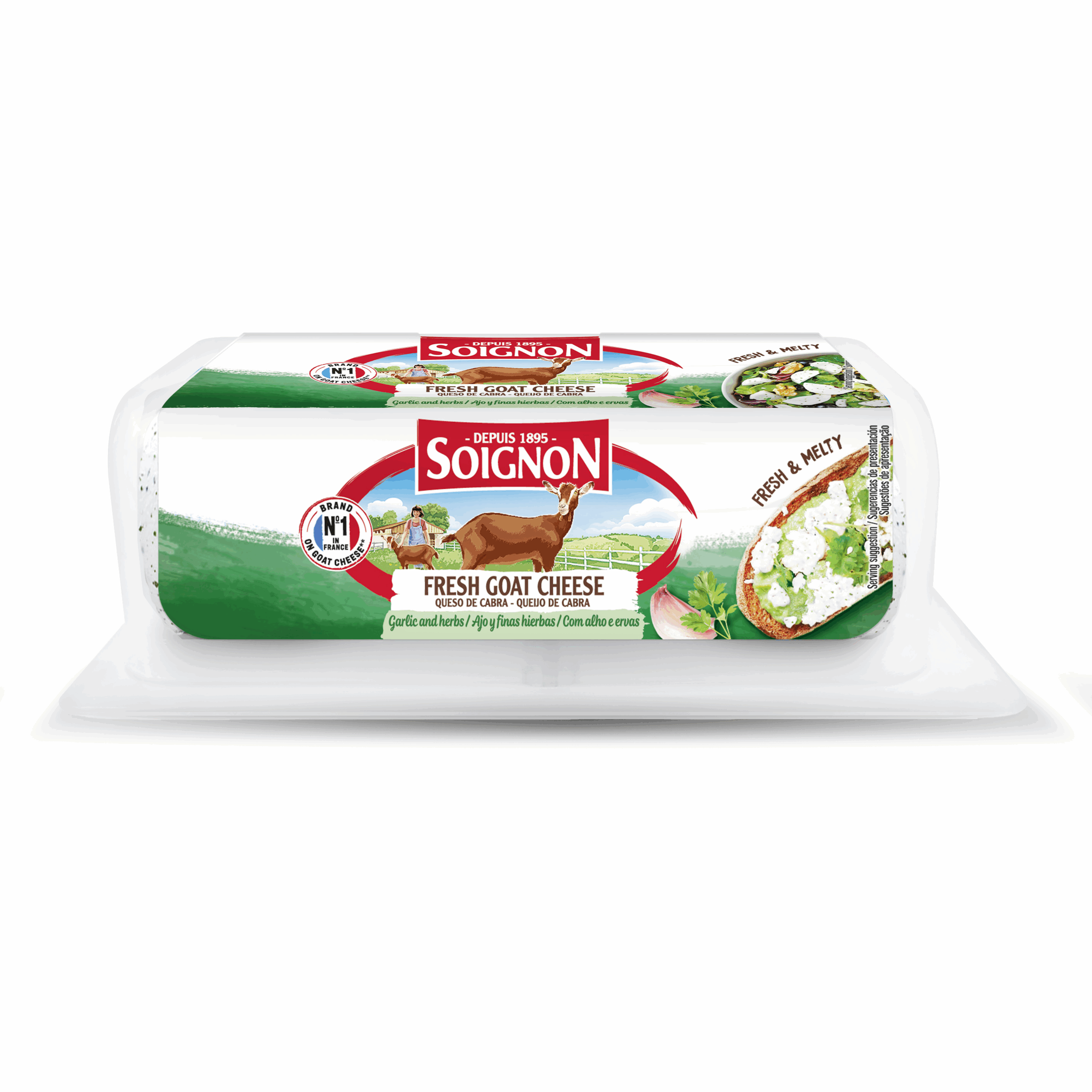 Soignon’s Garlic and Herbs fresh Goat Cheese Log melts in your mouth and has a unique pungent that everyone will love!